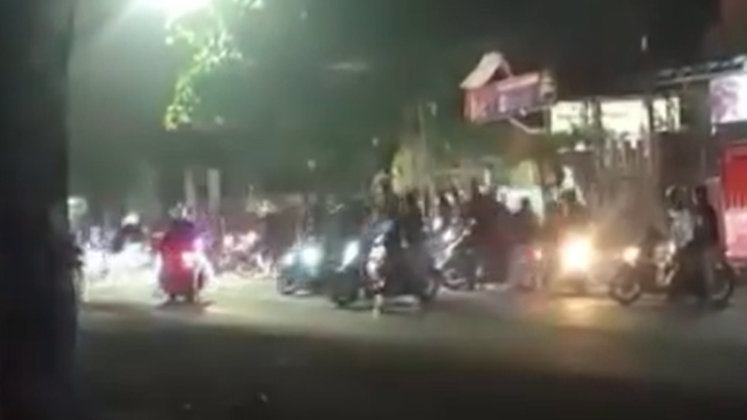Dalam rekaman berdurasi sekitar 15 detik itu, tampak sejumlah pemuda mengendarai sepeda motor secara berkelompok dengan perilaku yang mengarah pada tindakan provokatif.